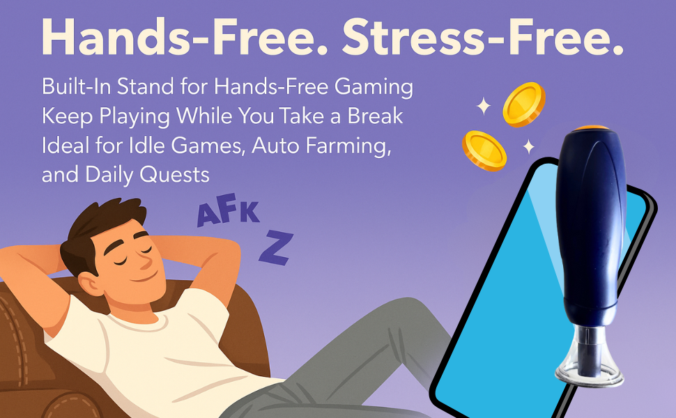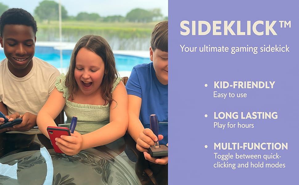 Hands-free gaming: Includes an integrated stand to keep your Sideklick™ steady on your phone or device and your hands free. Great for long sessions or auto-grinding without physical strain or distraction. Progress doesn't pause, even when you do.