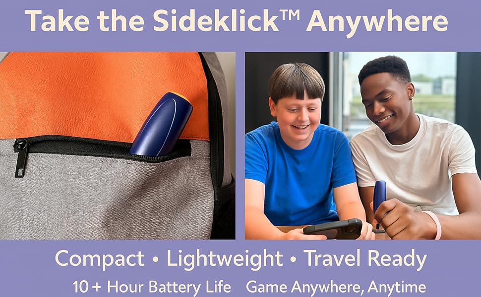 Compact, portable design: Lightweight and travel-ready, Sideklick™ goes where you go. Whether you’re gaming at home or on the go, your ultimate gaming sidekick is always ready. Small enough to fit in your pocket, powerful enough to change the game.