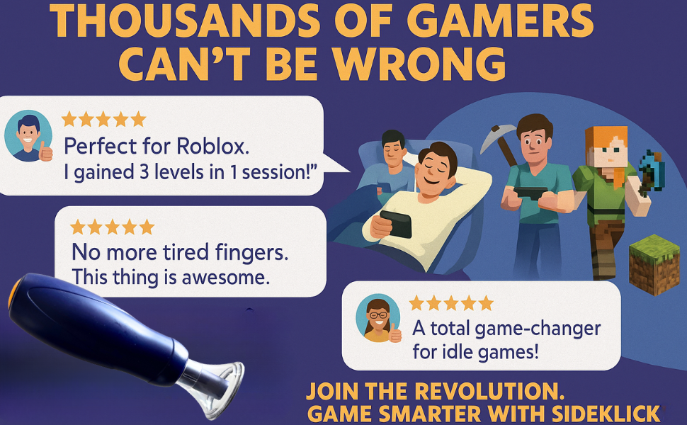 Dual-mode versatility: Switch between quick-clicking and hold mode effortlessly. Whether farming resources or spamming attacks, the Sideklick™ adapts to your play style for max efficiency.
